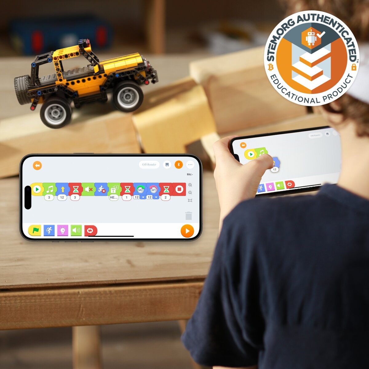 Играть с собранной моделью можно и без программирования. Двигайте джойстиками, наклоняйте телефон, чтобы задать направление движений, или рисуйте маршрут, который робот повторит в реальной жизни.
